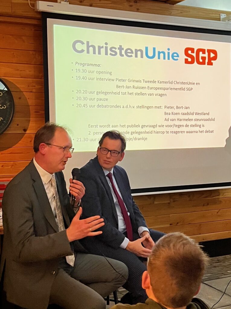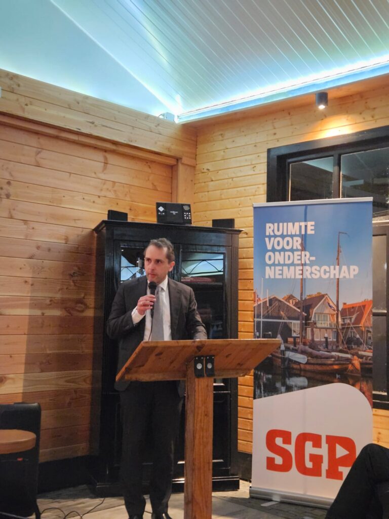 De avond werd geopend met gebed, na een overdenking door dominee Guis (Poeldijk) over Genesis 27, waarin Jakob op zoek is naar de zegen van God. Daarbij werd benadrukt dat Gods zegen onmisbaar is, ook – en juist – in het politieke werk. We mogen ons daarin afhankelijk weten van Zijn leiding en zegen.